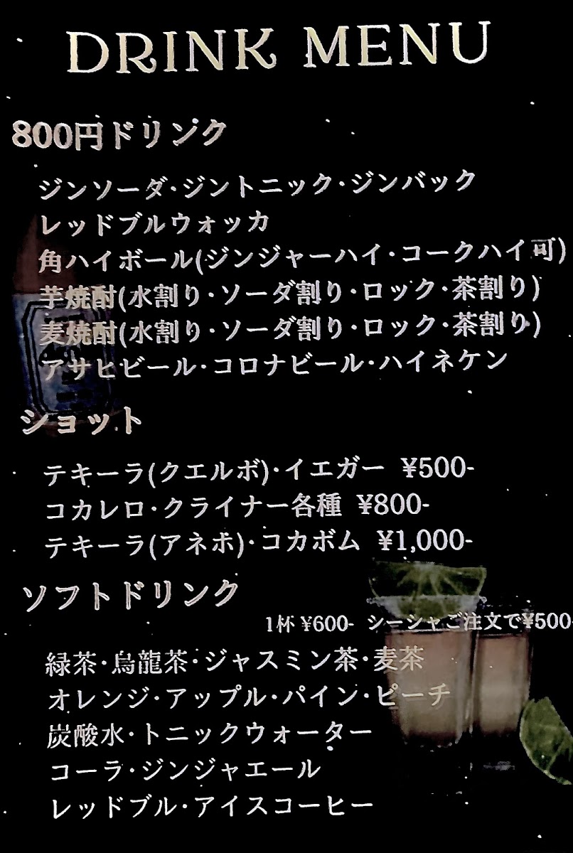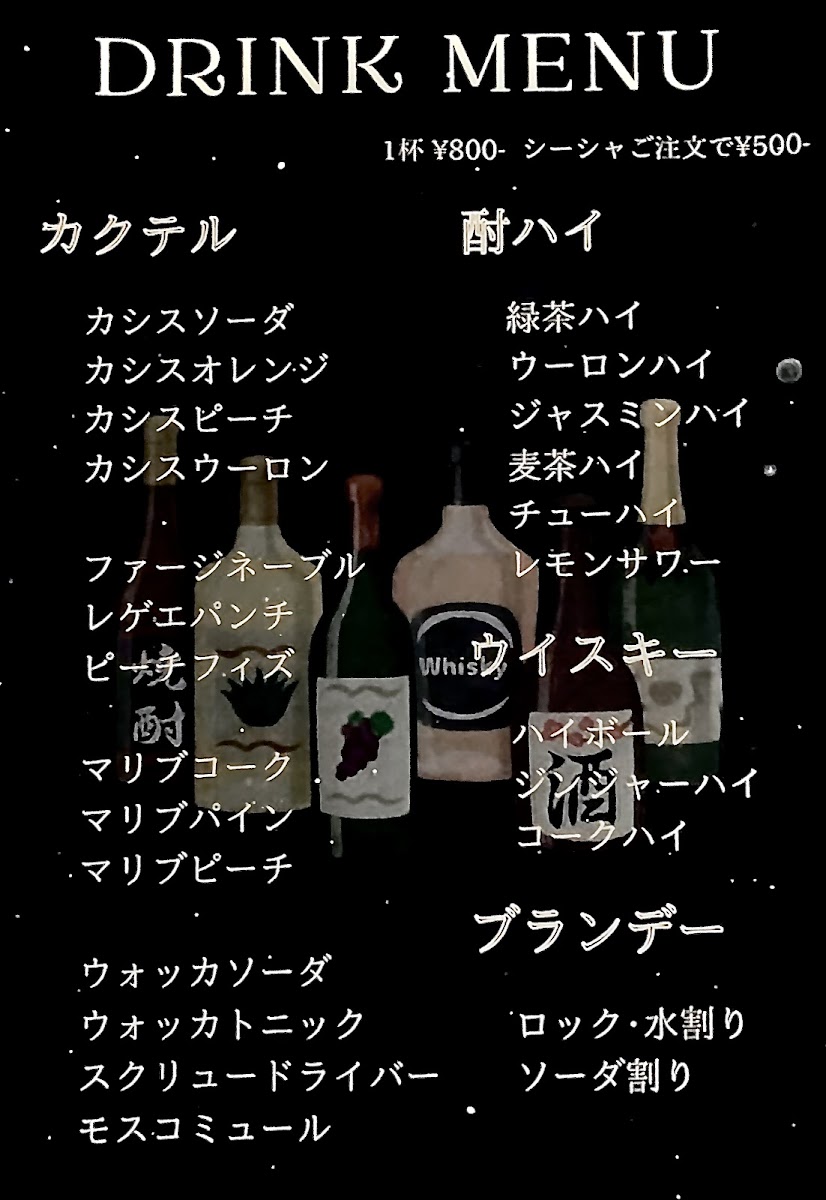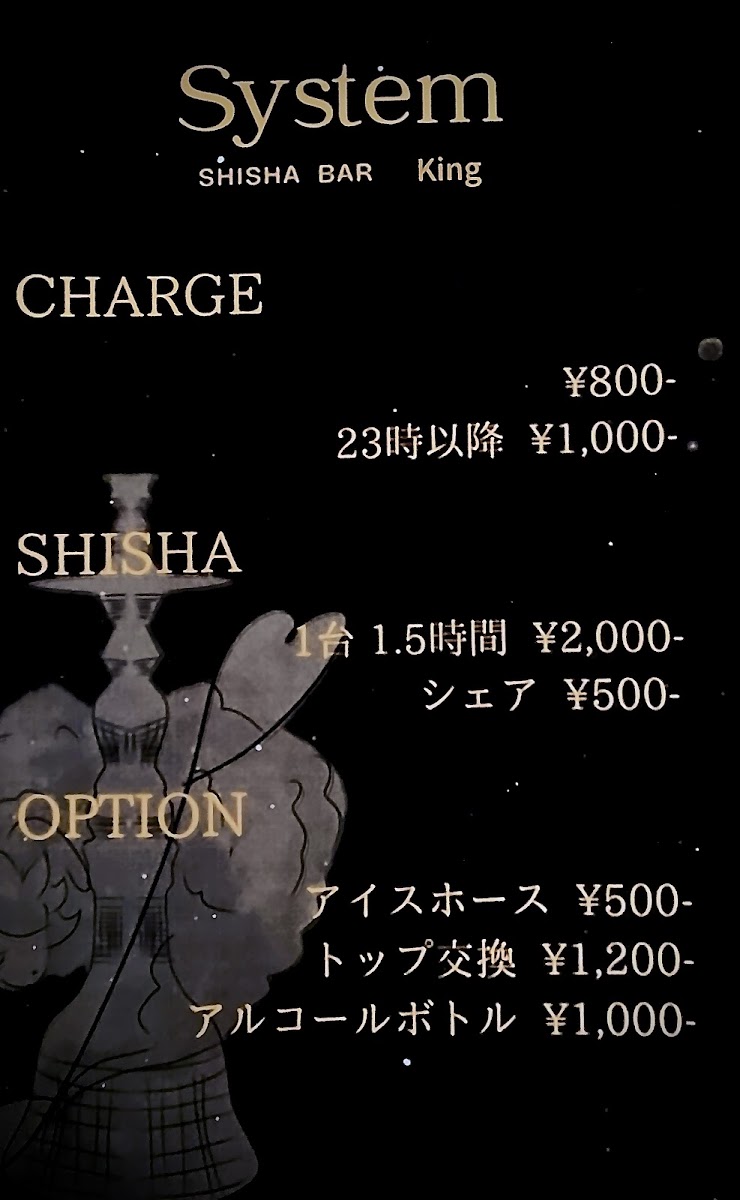 One of the highlights of SHISHA BAR King is its extensive menu that caters to both shisha enthusiasts and casual visitors alike. For just JP¥2,000, you can indulge in their high-quality shisha for 1.5 hours. If you're in the mood to share, you can enjoy it with friends for an additional JP¥500. Completing the experience, you can sip on delightful cocktails such as their Cassis Soda, priced at JP¥800, which perfectly complements the relaxing vibe of the bar.